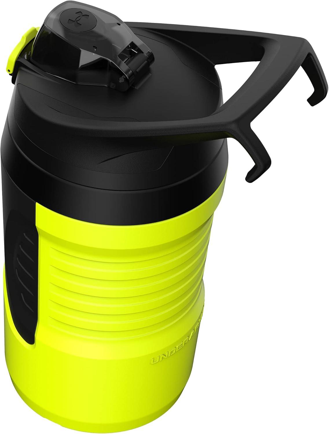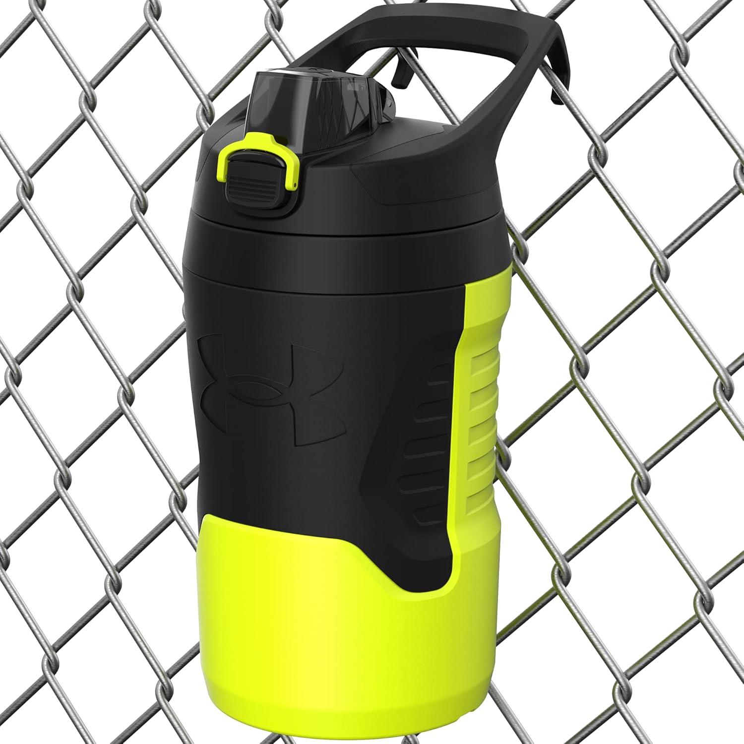 The Under Armour Playmaker Jug is a sport water bottle for athletes. This 32 oz insulated water bottle is designed to keep your beverages cold for up to 10 hours, making it an ideal companion for tournaments and game days. With a non-slip side grip and marked measurements in ounces and milliliters, this sports water bottle helps you track your hydration. The top handle and built-in fence hooks provide convenient portability and easy hang-up. The lockable and leak-resistant lid on this large insulated water bottle helps maintain cleanliness while you're out on the field. This 32oz water bottle is constructed to be both functional and durable, made for activities like baseball and football. This 32 ounce water bottle helps you stay hydrated without frequent refills. Care is simple with a dishwasher-safe lid and self-draining cap to prevent puddles during washing. The Under Armour Playmaker Jug is BPA and lead-free. As a water bottles insulated water jug for drinking, it offers both convenience and performance. Under Armour aims to inspire with high-performance solutions that are essential for athletes. With this sport water bottle insulated to keep drinks cold, you'll be well-prepared for your athletic endeavors