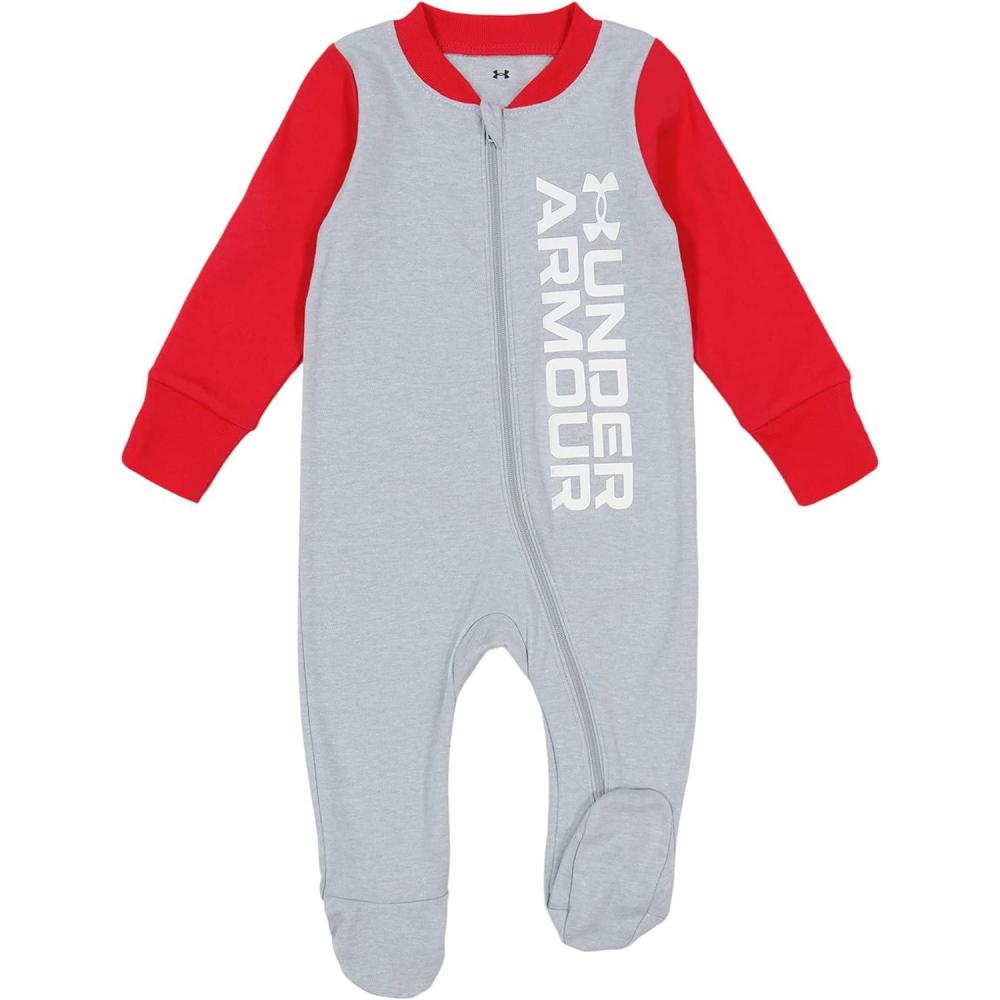 imageUnder Armour Baby Boys Coverall Footie Zipup Closure Logo ampamp Printed DesignsMod GrayRed Wordmark