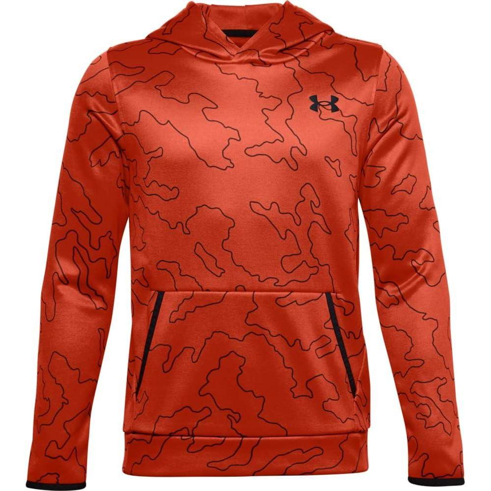Under Armour boys Armour Fleece Printed Hoodie(Rich Orange (830)/Black)