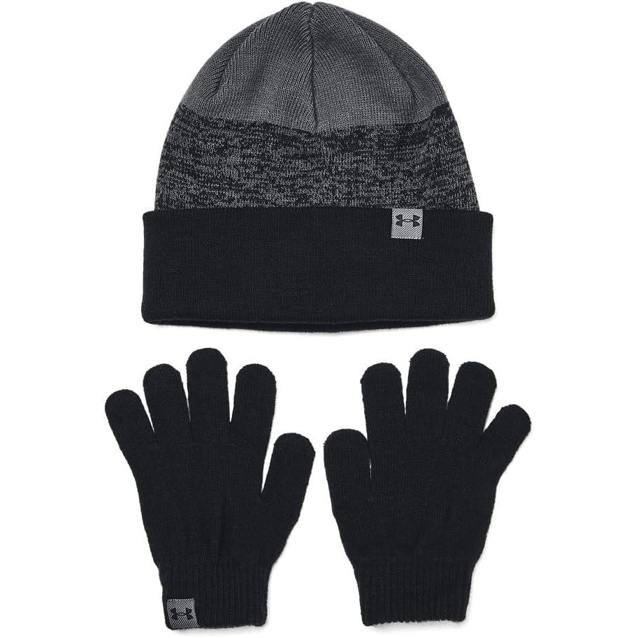 Under Armour boys Beanie & Glove Combo((001) Black / Pitch Gray / Black)