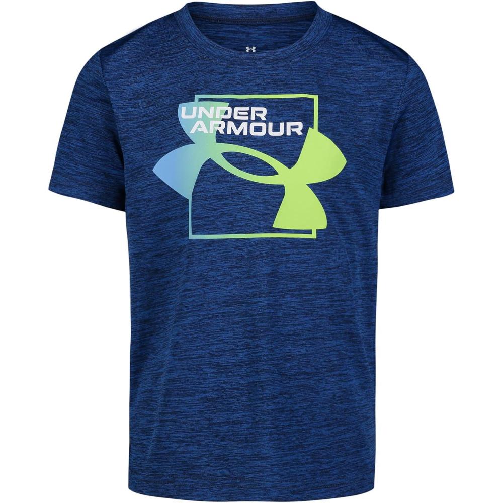 Under Armour Boys Classic Core Logo T-Shirt, Wordmark Print & Baseball Designs, Crew Neck(Big Logo Twist Blue)