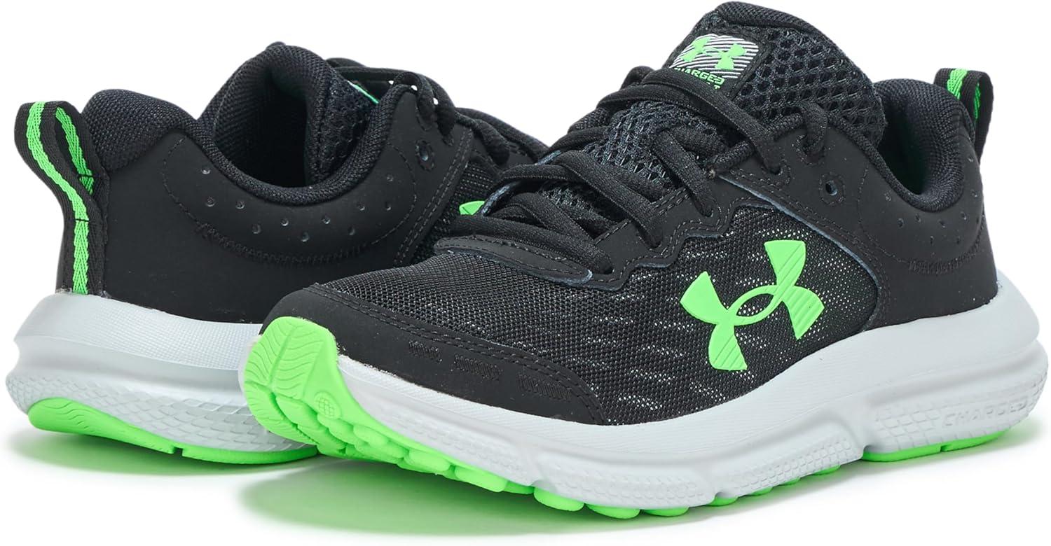 Under Armour Boys’ Grade School Assert 10 Athletic Shoes((006) Black/Mod Gray/Green Shock)