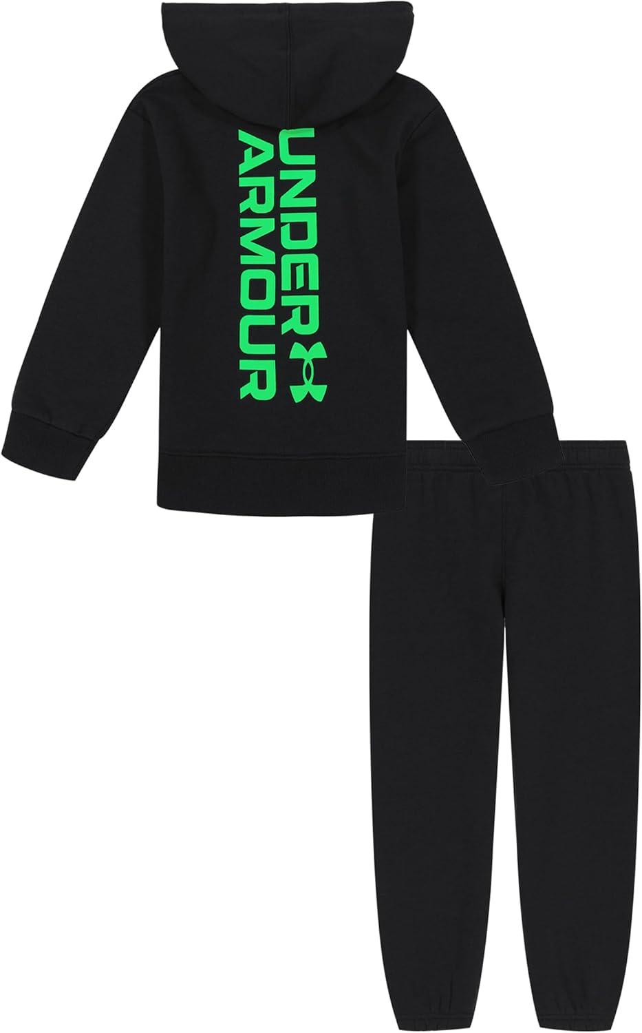 Under Armour boys Hoodie Set, pants & Hoodie, Lightweight & Relaxed Fit(Black/Green)