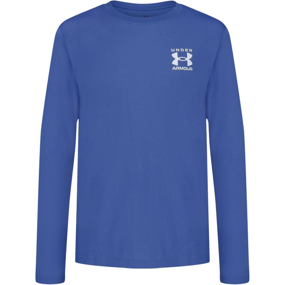 Under Armour Boys Outdoor Long Sleeve Tee, Stylish Crew Neckline, Cute Full Fit(Blue)