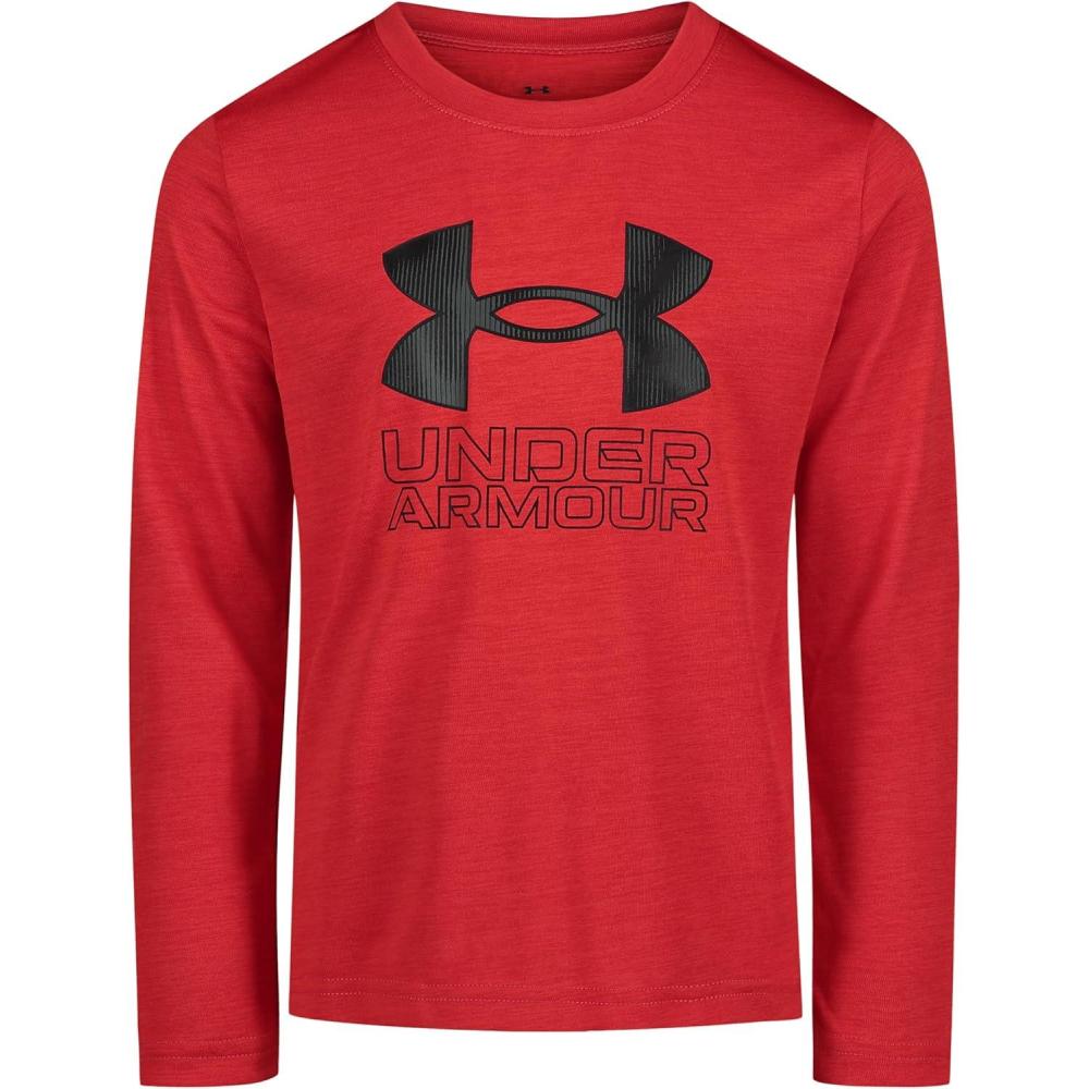 Under Armour Boys Outdoor Long Sleeve Tee, Stylish Crew Neckline, Cute Full Fit(Red - Valley Etch)