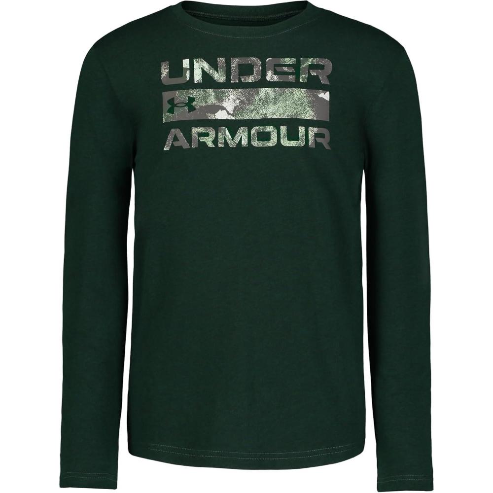 Under Armour Boys Outdoor Long Sleeve Tee, Stylish Crew Neckline, Cute Full Fit(Stacked Forest Green)
