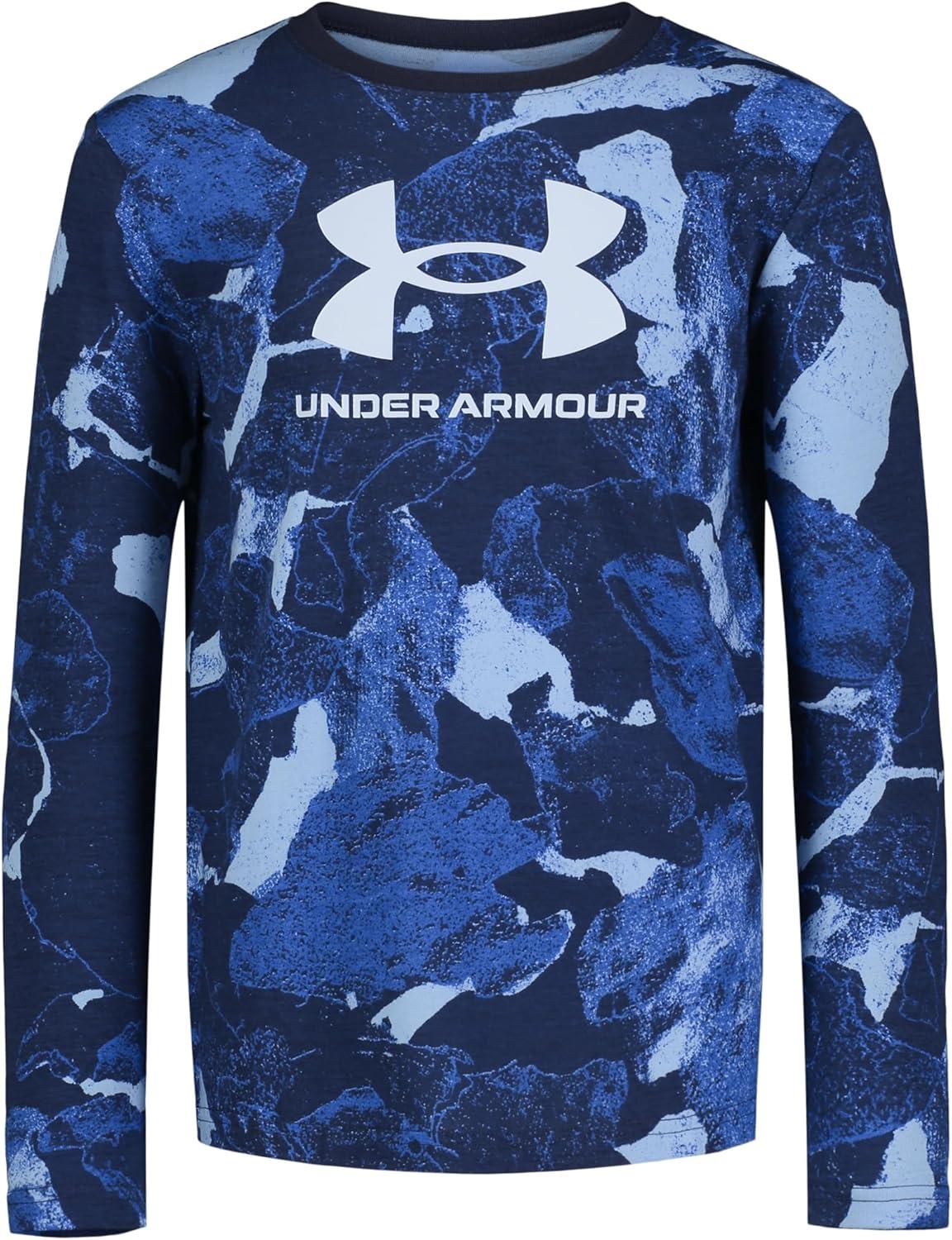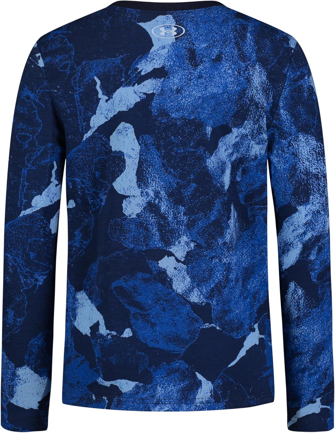 Under Armour Boys Outdoor Long Sleeve Tee, Stylish Crew Neckline, Cute Full Fit(Tech Blue Rock Shades)