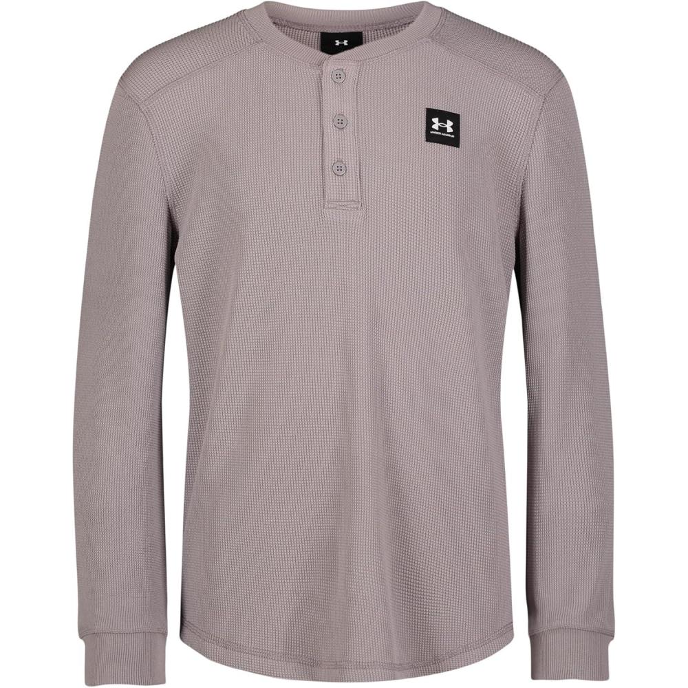 Under Armour Boys Outdoor Long Sleeve Tee, Stylish Crew Neckline, Cute Full Fit(Tetra Gray Henley Thermal)