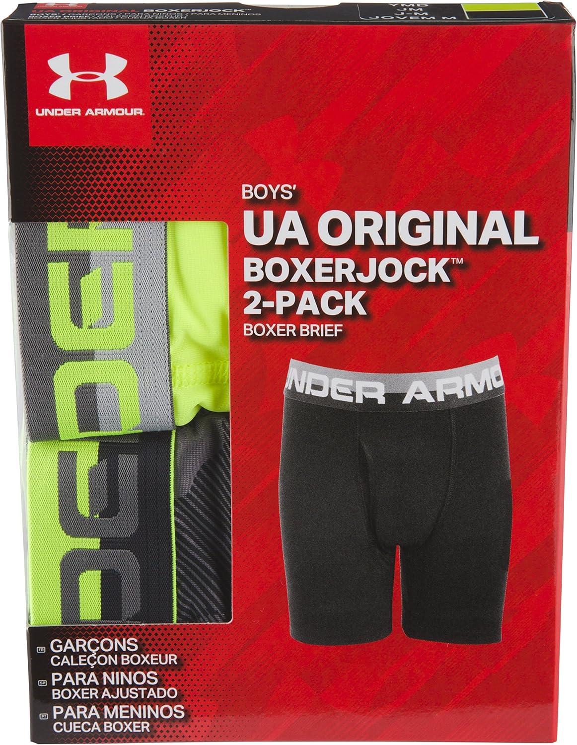 Under Armour boys Performance Boxer Briefs, Lightweight & Smooth Stretch Fit(Graphite/Yellow)
