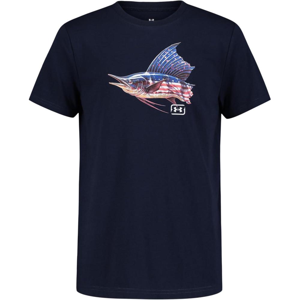 Under Armour Boys Short Sleeve Shirt, Crewneck, Lightweight and Breathable, Outdoor(Midnight Navy Marlin Tee)