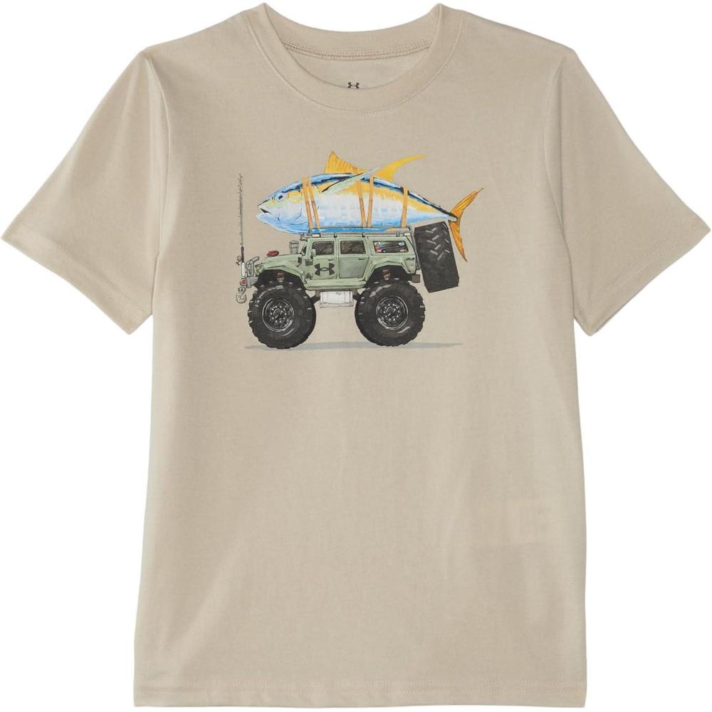 Under Armour Boys Short Sleeve Shirt, Crewneck, Lightweight and Breathable, Outdoor(Sandstorm Tuna Truck)