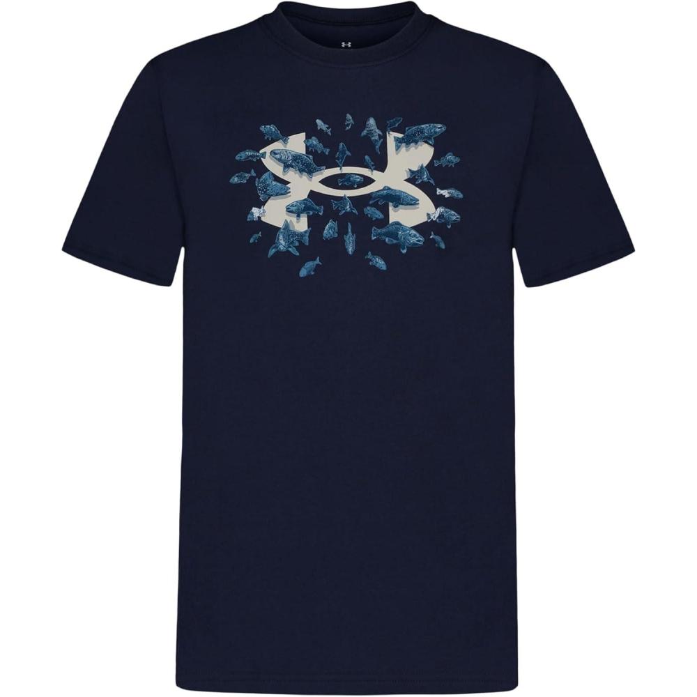 Under Armour Boys Short Sleeve Shirt, Crewneck, Lightweight and Breathable, Outdoor(Washed Navy Swimming Fish Tee)