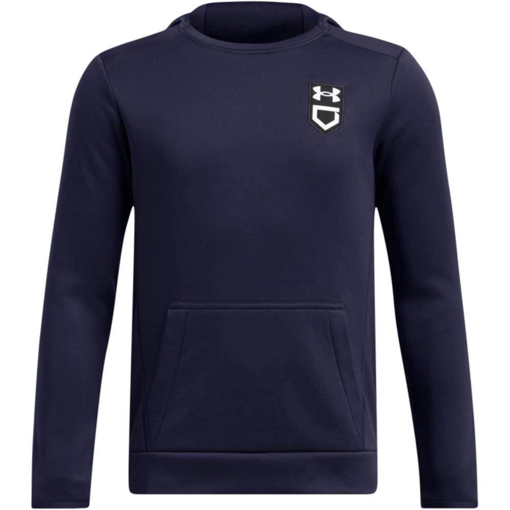 Armour Fleece® is our original performance replacement for old-school fleece. It's light, incredibly warm, and has just the right amount of stretch. Armour Fleece® is light, breathable & stretchy for warmth that still lets you move. Soft inner layer traps heat to keep you warm & comfortable. Zero-distraction hood design with no drawstring gives you full peripheral vision. Room in shoulders & chest for comfort while wearing over a jersey. Tighter forearms stay put while batting & playing catch & shortened cuffs for comfort with batting gloves. Front kangaroo pocket. . . . . 100% Polyester.
