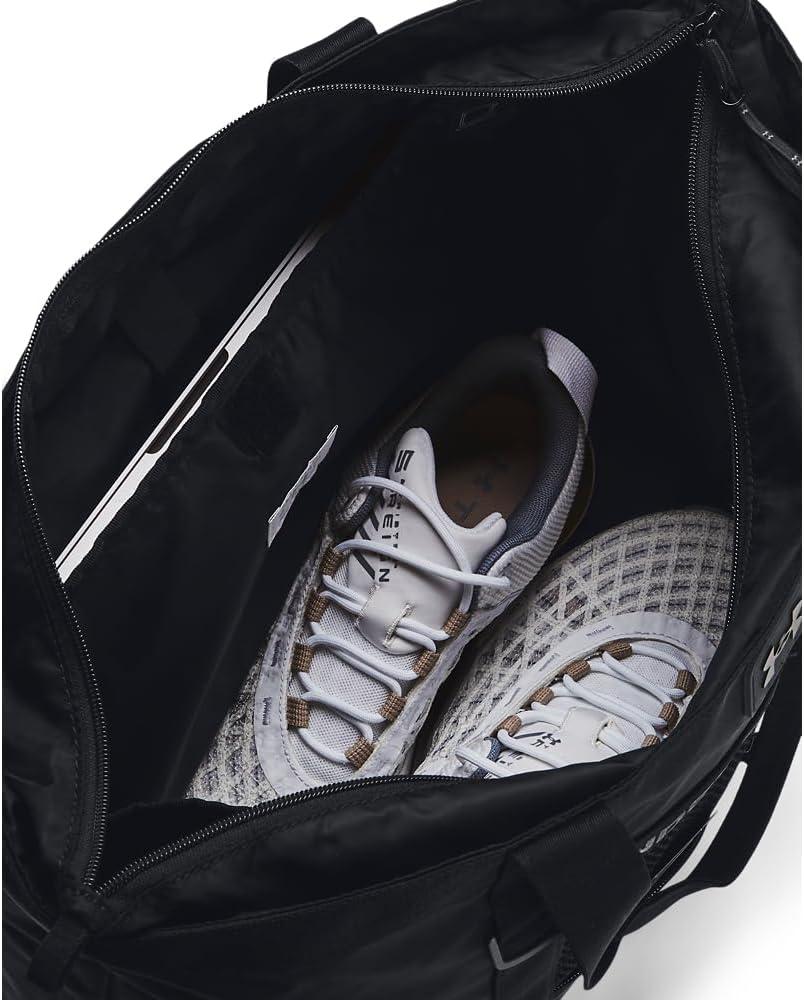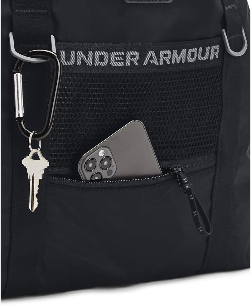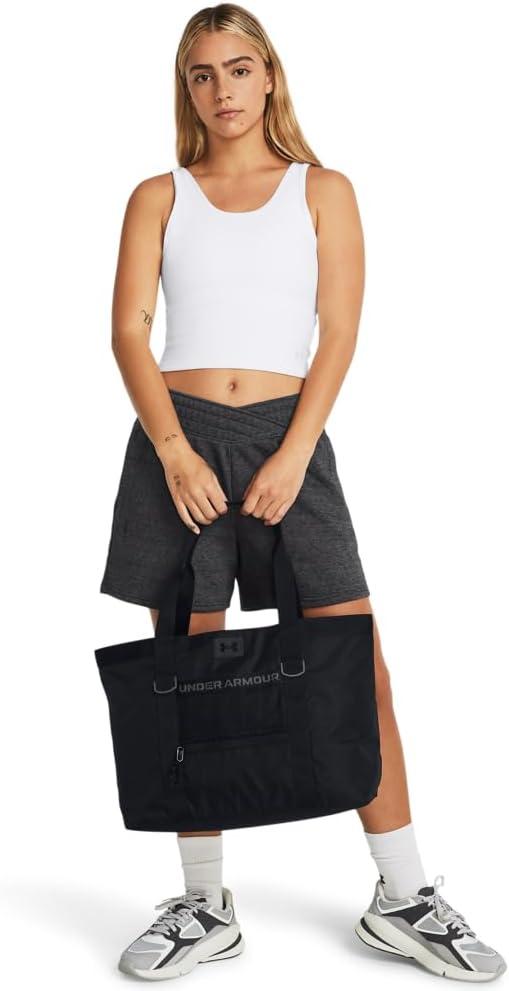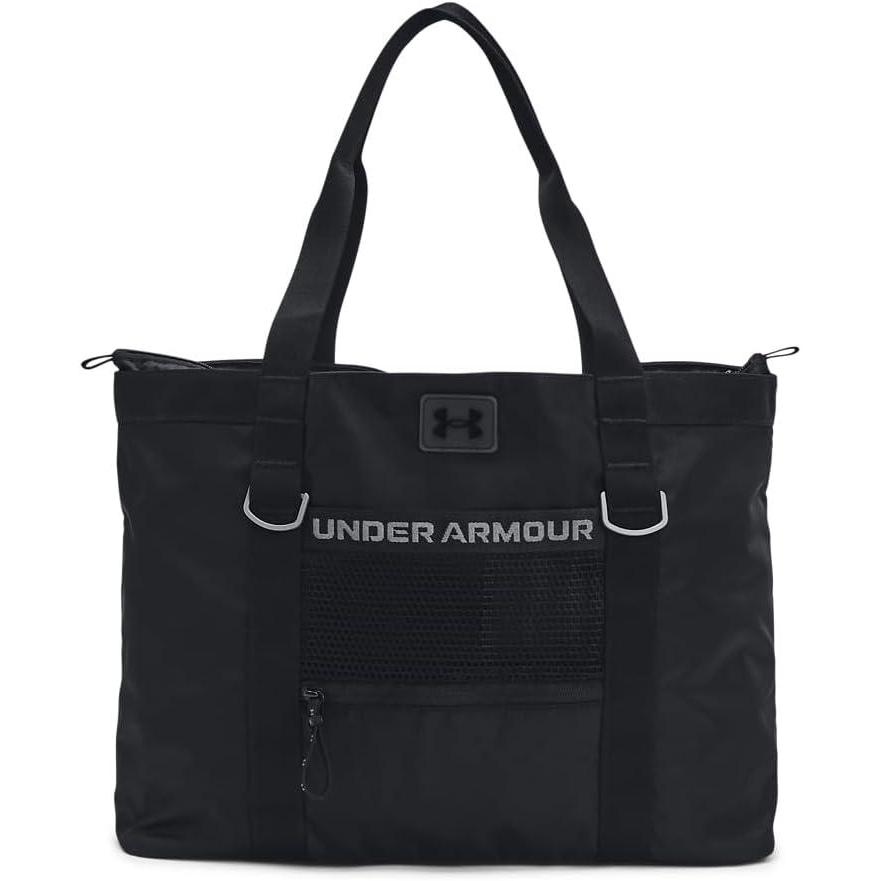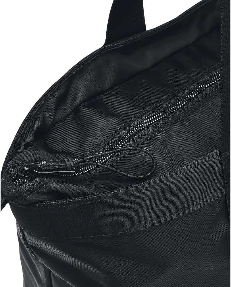 More than a tote. Carries your laptop, tons of room, and has zipper pulls that double as hair ties. Large zip-shut main compartment with interior water bottle pocket & zip mesh laundry pocket. Soft-lined laptop or tablet sleeve—holds up to 16″ MacBook Pro® or similarly sized laptop. Front drop-in mesh pocket, water bottle pocket & zip valuables pocket with a hair tie zipper pull. D-ring attachment points so you can clip any bag with a carabiner for easy transport. Durable, abrasion-resistant bottom panel. Dimensions When Full: 7″W x 12.5″H x 16.1″L. Volume: 21.75 L. 100% Nylon