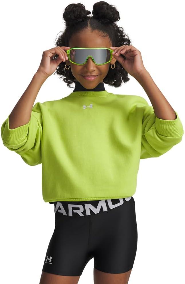 Under Armour girls Rival Fleece Oversized Crew((326) Green Vibe / / White)