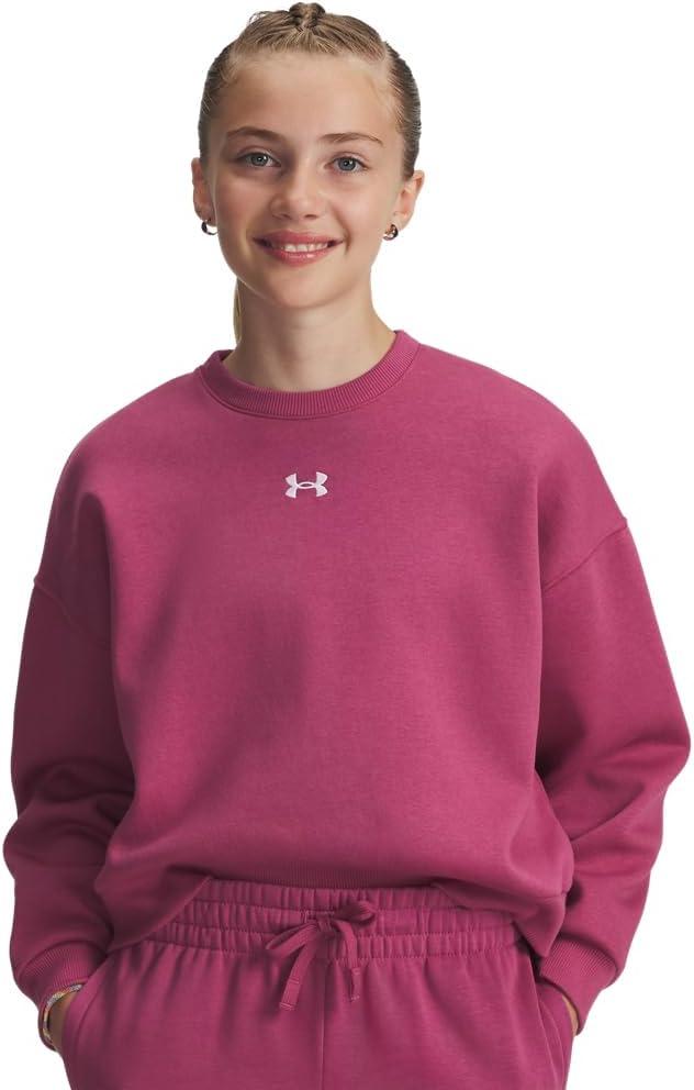 Under Armour girls Rival Fleece Oversized Crew((659) Fuchsia Dusk / / White)