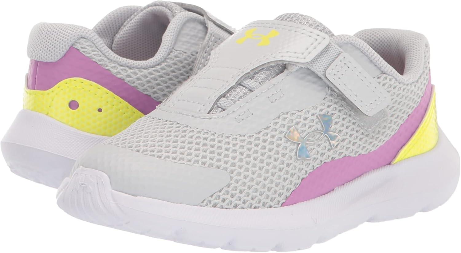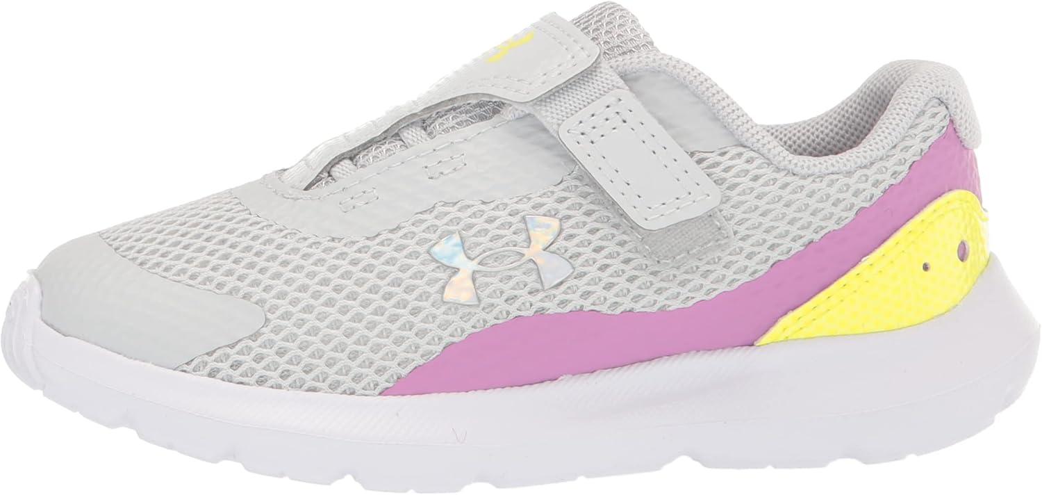 Under Armour Girls’ Surge 3 Alternate Closure Running Shoes((101) Halo Gray/Jellyfish/Iridescent)