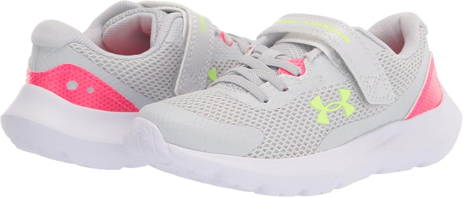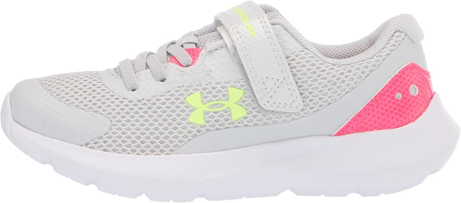 Under Armour Girls’ Surge 3 Alternate Closure Running Shoes(Halo Gray (100)/Quirky Lime)