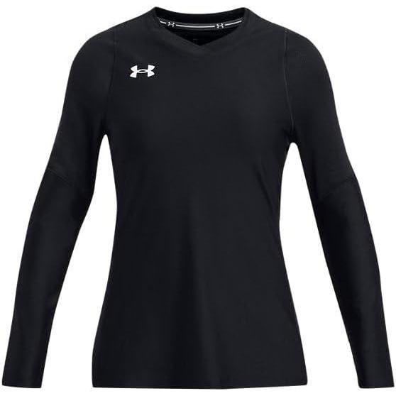 Under Armour Girls’ Volleyball Powerhouse Long-Sleeve Jersey(Black (001)/Metallic Silver)