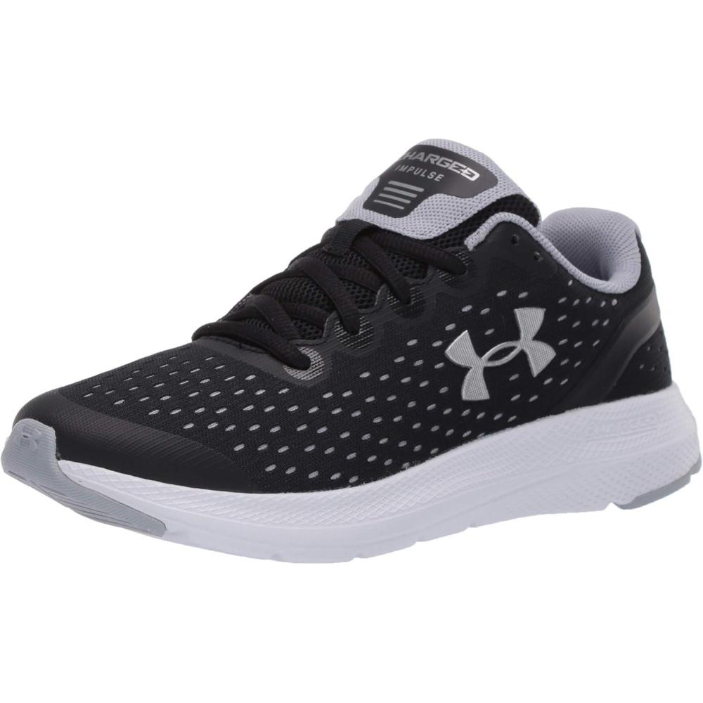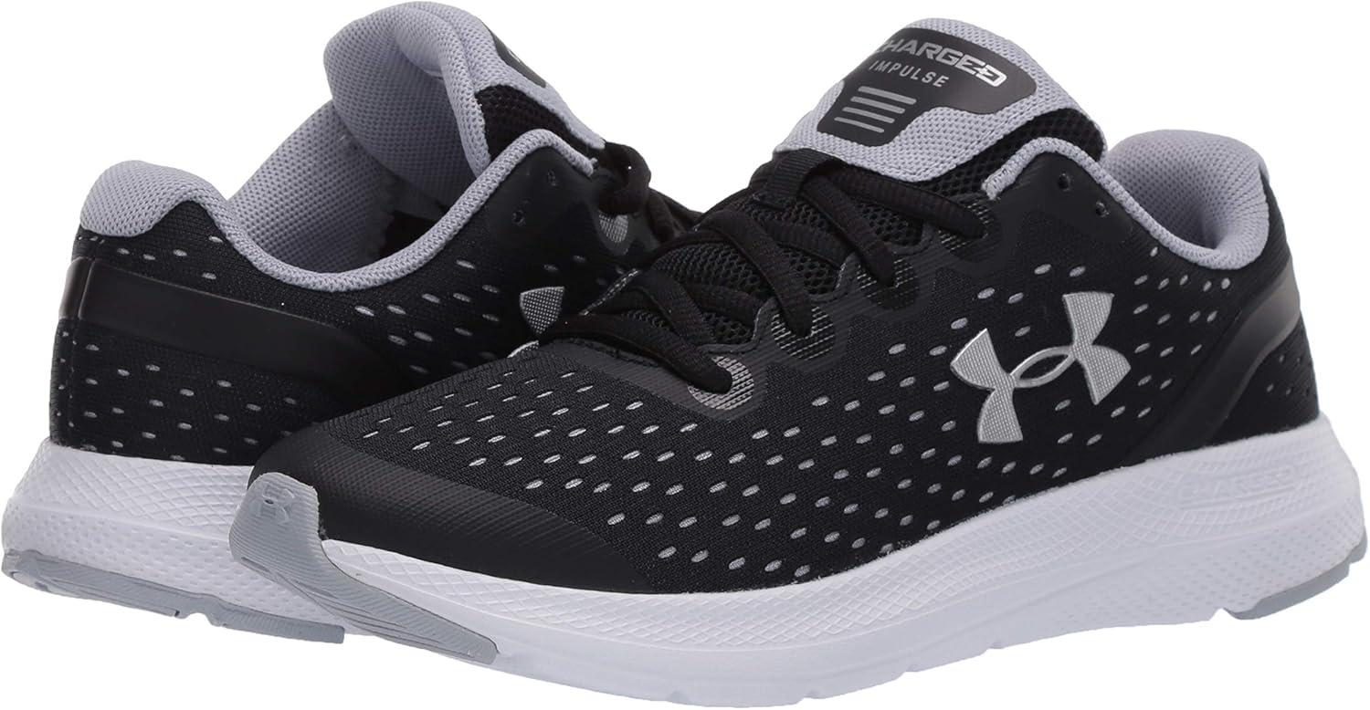 Under Armour Kids’ Grade School Charged Impulse Sneaker(Black/Metallic Silver)