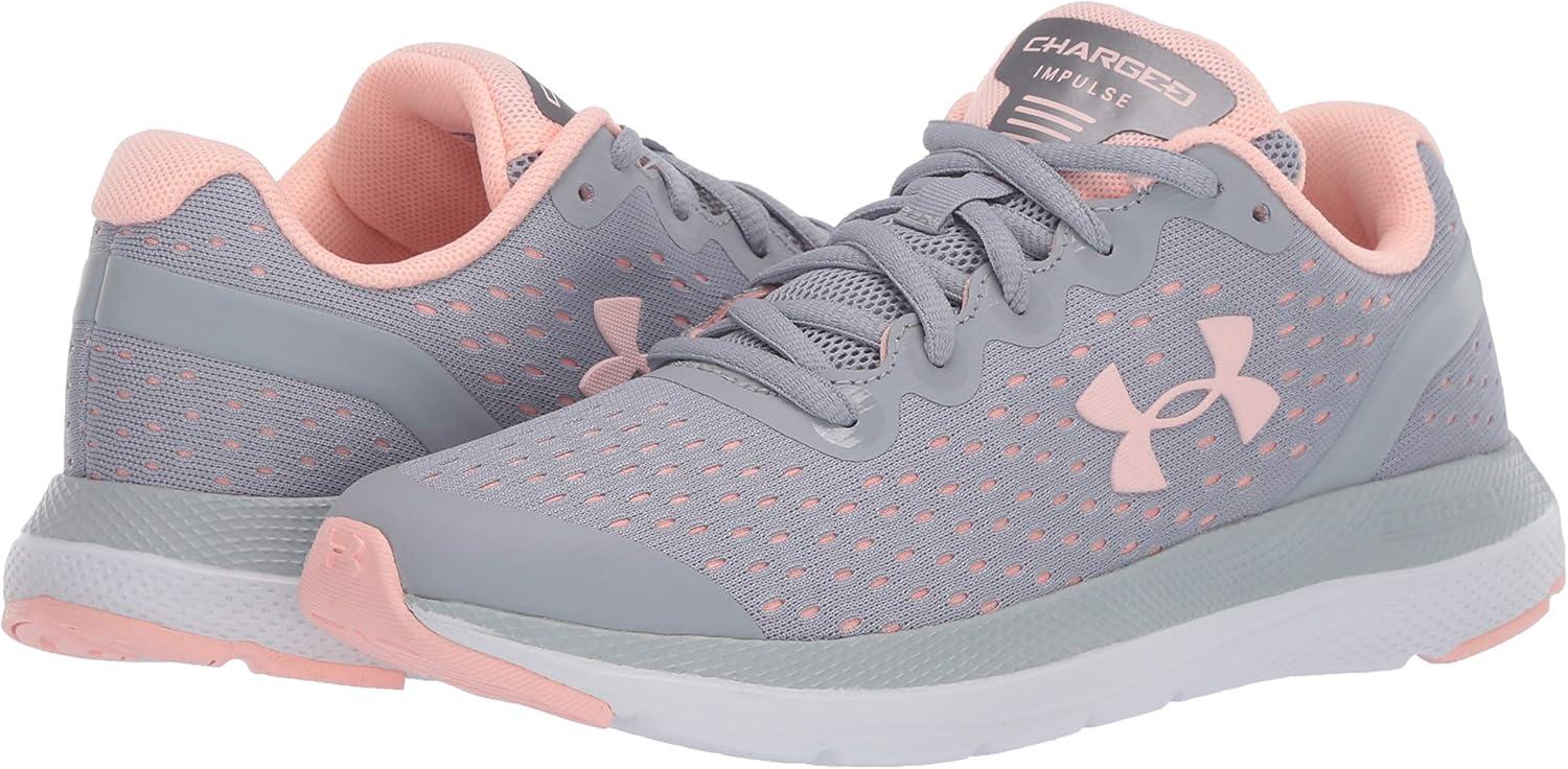 Under Armour Kids’ Grade School Charged Impulse Sneaker(Mod Gray (100)/Purple Dusk)