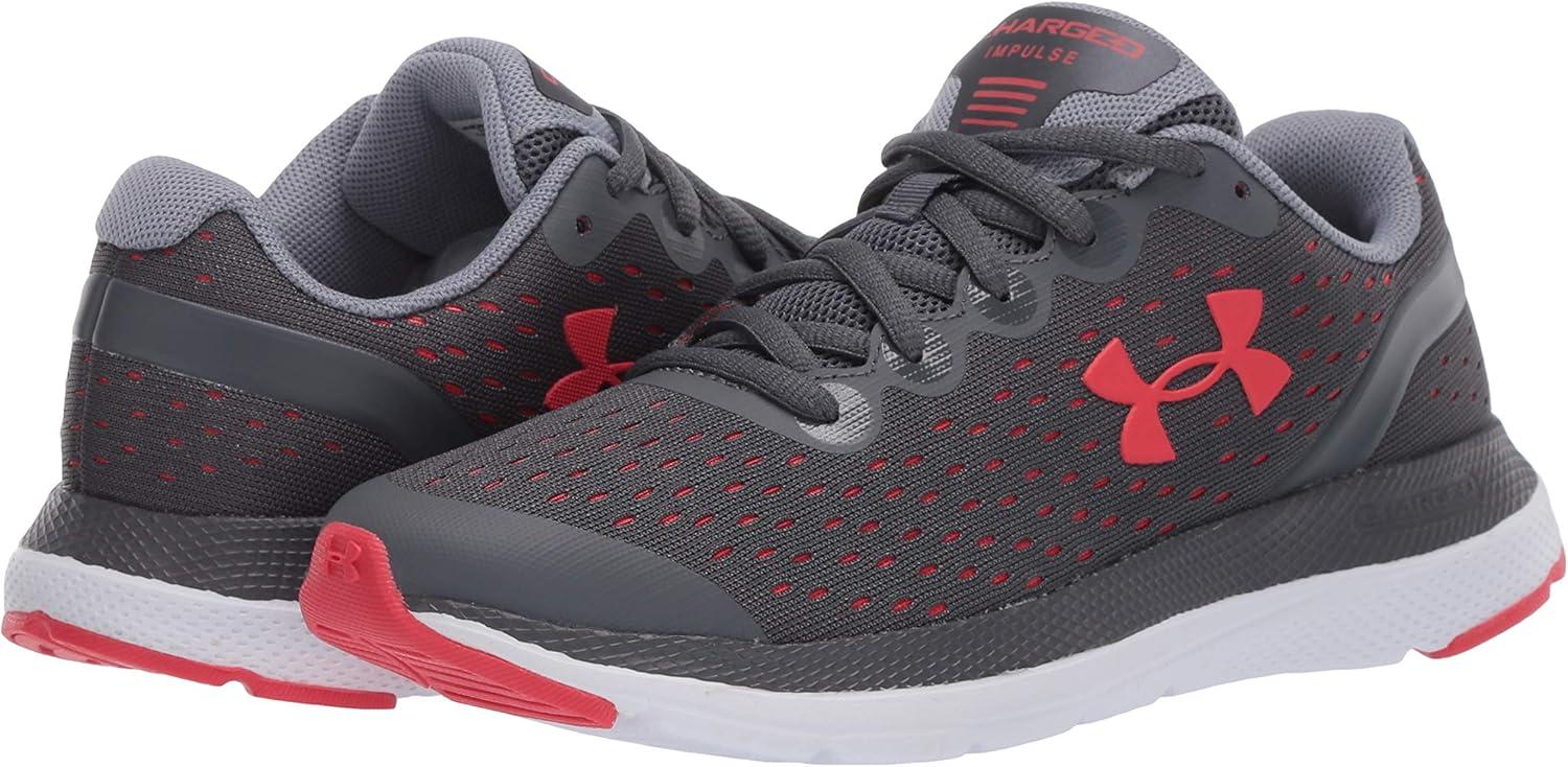 Under Armour Kids’ Grade School Charged Impulse Sneaker(Pitch Gray (101)/Versa Red)
