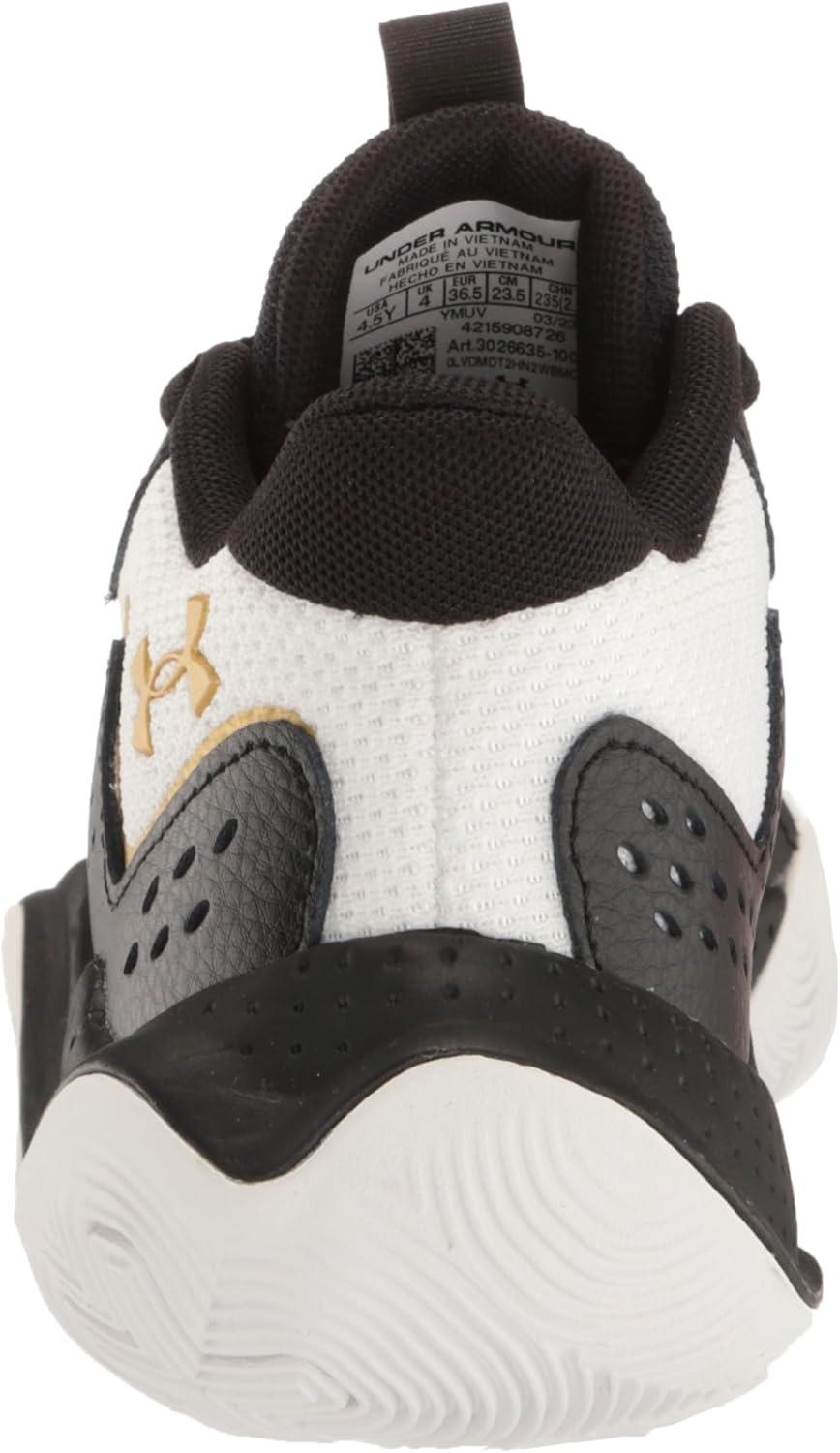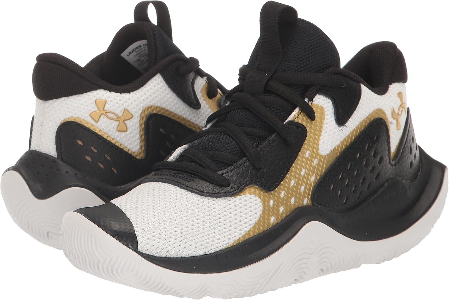 Under Armour Kids’ Grade School Jet ’23 Basketball Shoe((100) White/Black/Metallic Gold)