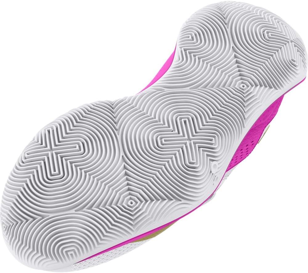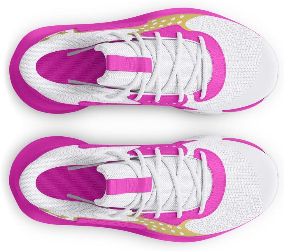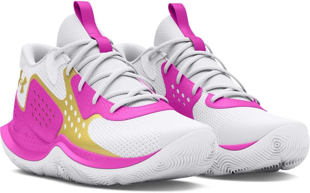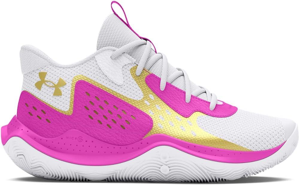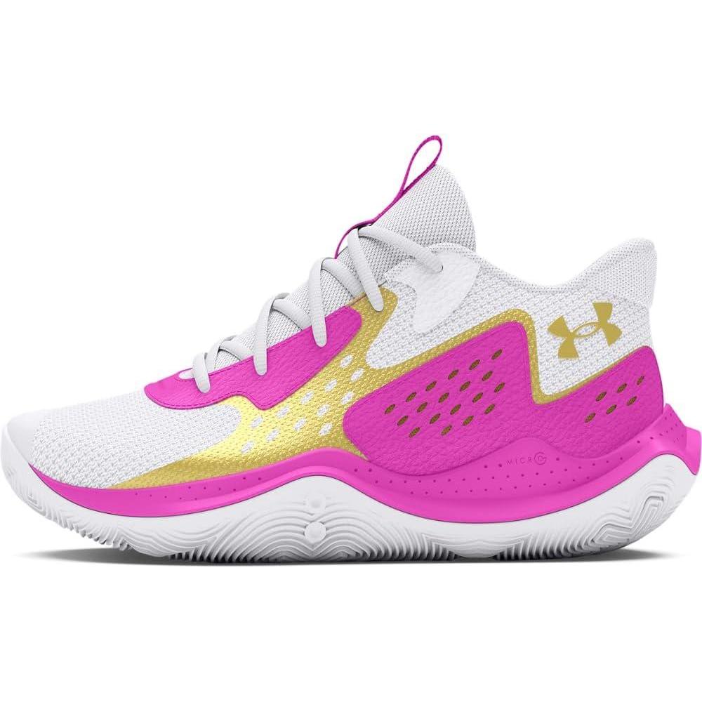 Under Armour Kids’ Grade School Jet ’23 Basketball Shoe((106) White/Vivid Magenta/Metallic Gold)