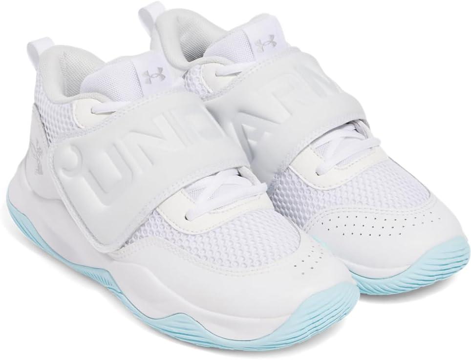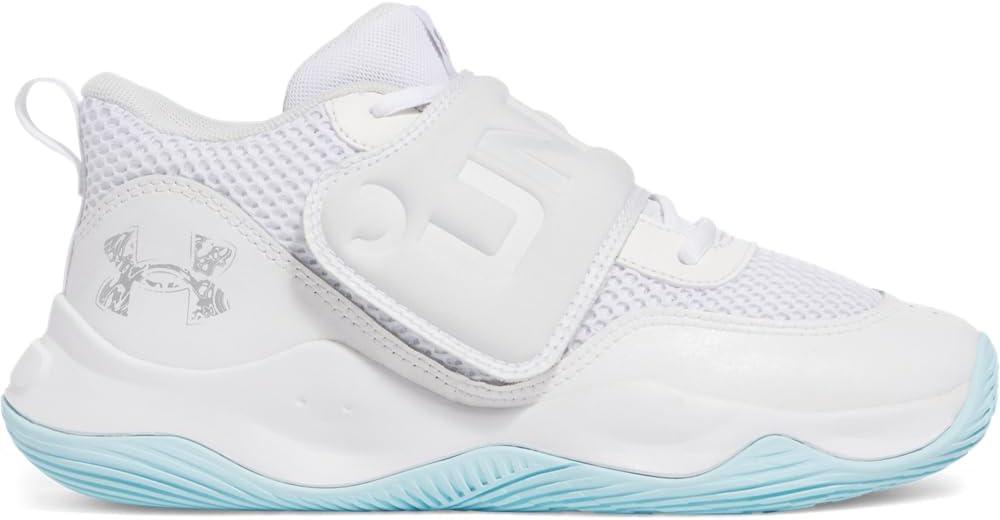 Under Armour Kids’ Grade School Zone Basketball 2 Shoe((104) White/White/Metallic Silver)