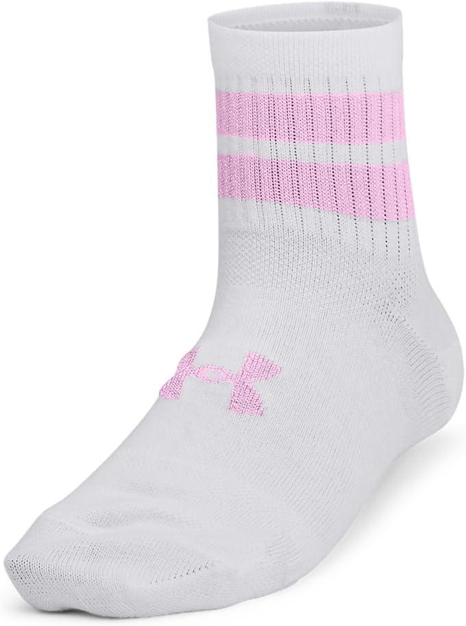 Under Armour Kids’ Youth Essential Quarter Socks 6 Pack((100) White / White / Stellar Pink)