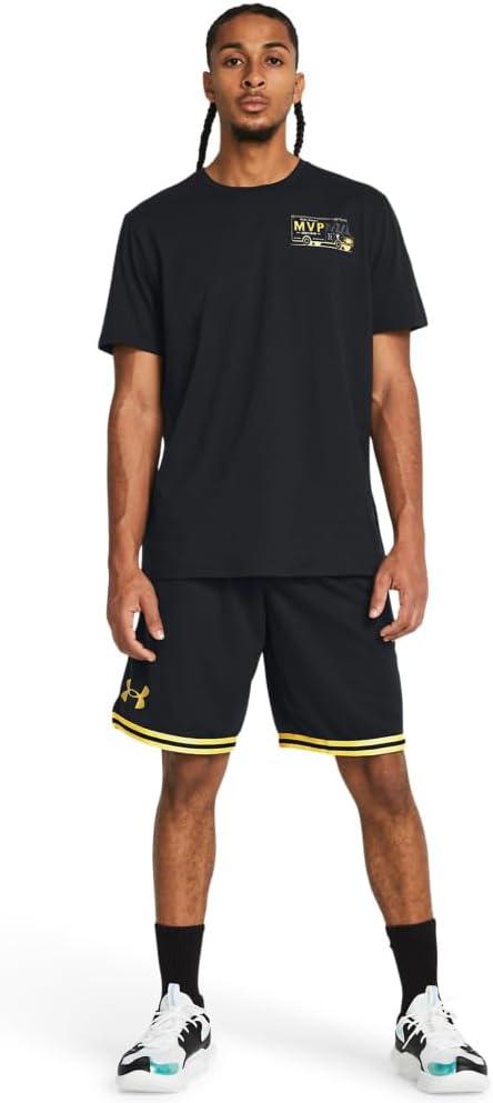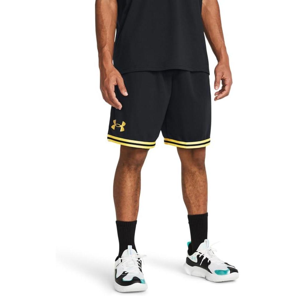 Under Armour Men’s 10-Inch Perimeter Basketball Shorts((002) Black / / Metallic Gold)