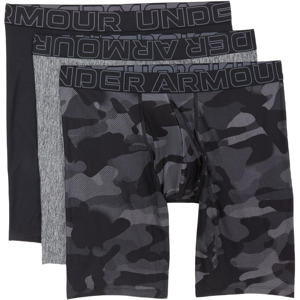 Under Armour Men’s 3-Pack Performance Tech Print 9” Boxer Briefs(Black)