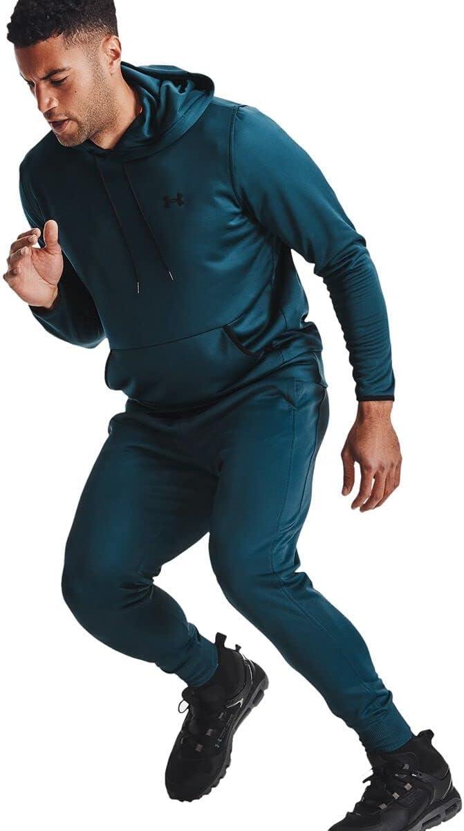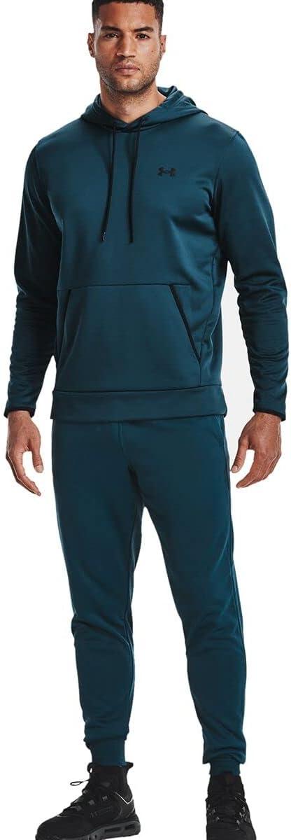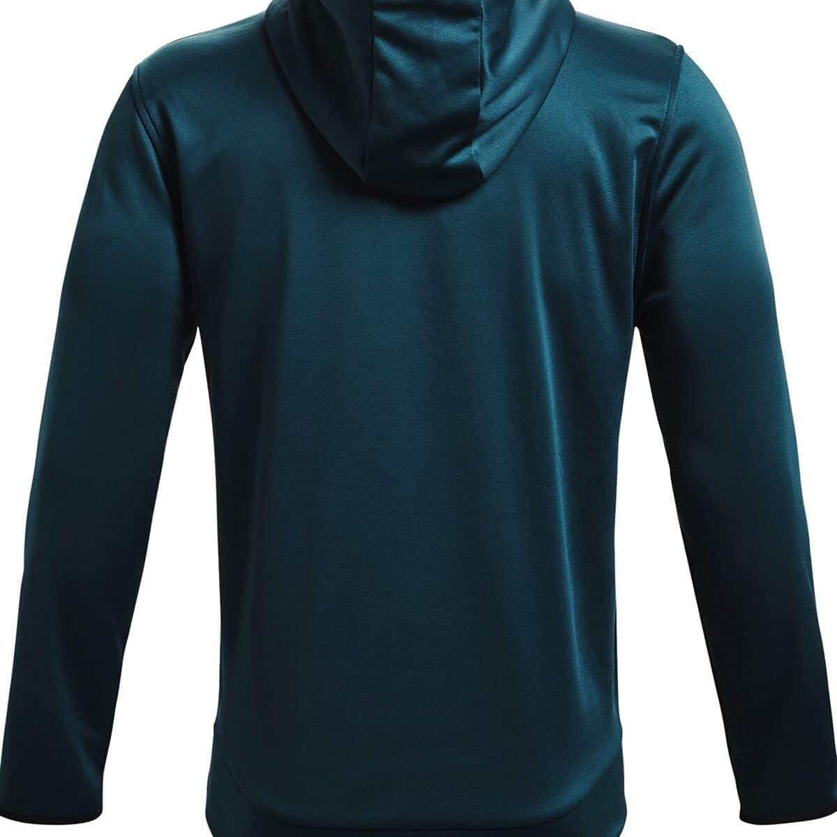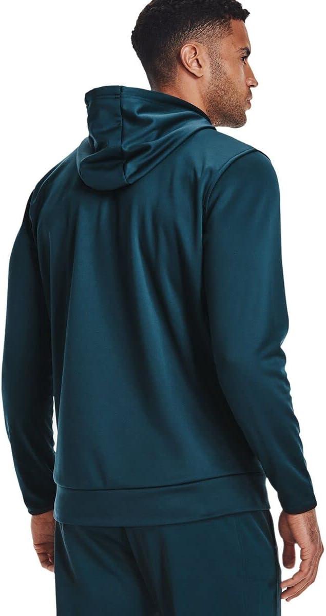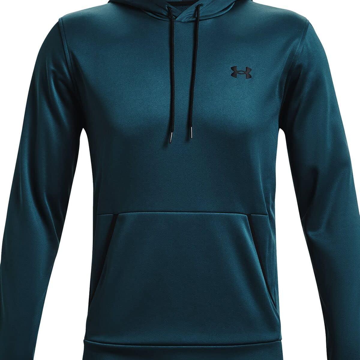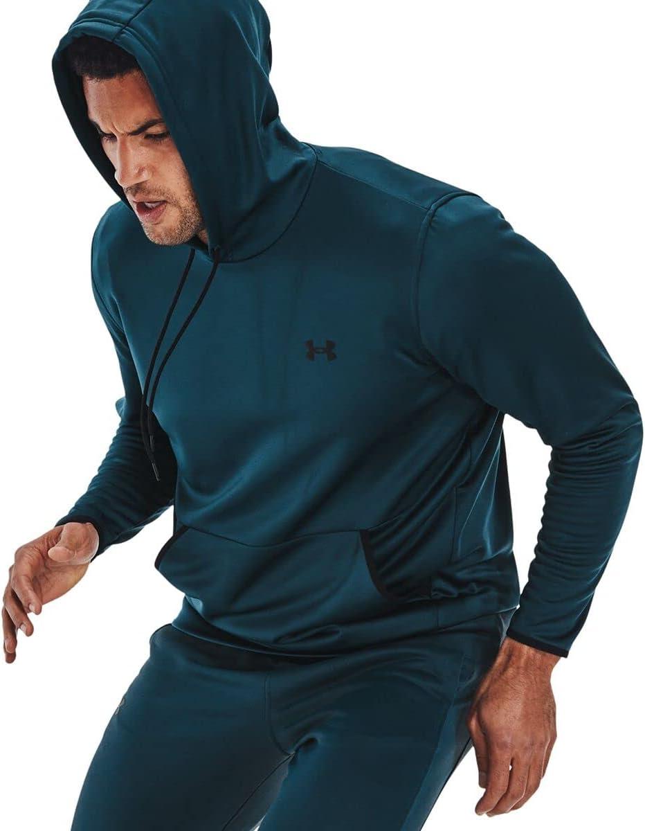 Layering up for winter runs usually means peeling off gear mile after mile. This men's athletic hoodie uses a special knit that not only keeps you warm, but stays light and breathable all run long. Armour Fleece® is light, breathable & stretches for superior mobility. Soft inner layer traps heat to keep you warm & comfortable. Adjustable, crossover hood construction. Front kangaroo pocket. Elastic binding on cuffs. Loose:Fuller cut for complete comfort. 100% Polyester.