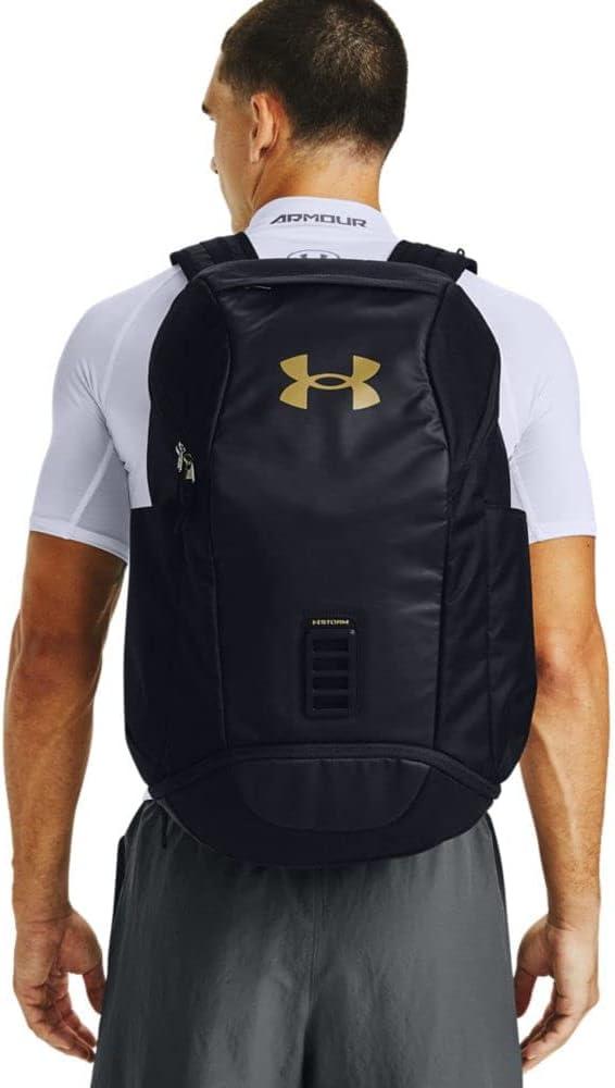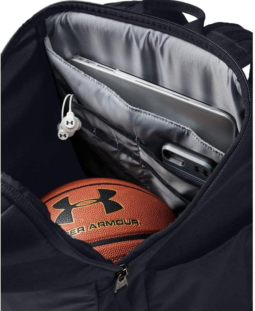 UA Storm technology delivers an element-battling, highly water-resistant finish. Large main compartment fits a full-size basketball, soccer ball, volleyball, etc.. Tough, abrasion-resistant bottom panel. Breathable air-mesh padded back panel & adjustable, padded shoulder straps for total comfort. Soft-lined laptop sleeve—holds up to 15″ MacBook Pro or similarly sized laptop & organization pockets. Adjustable, removable strap clip on shoulder to prevent duffle bag from falling off when carrying both. Welded hypalon modern molle webbing for additional attachment points. Sternum strap clip & top grab handle