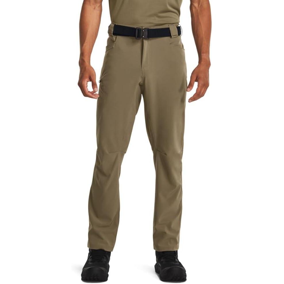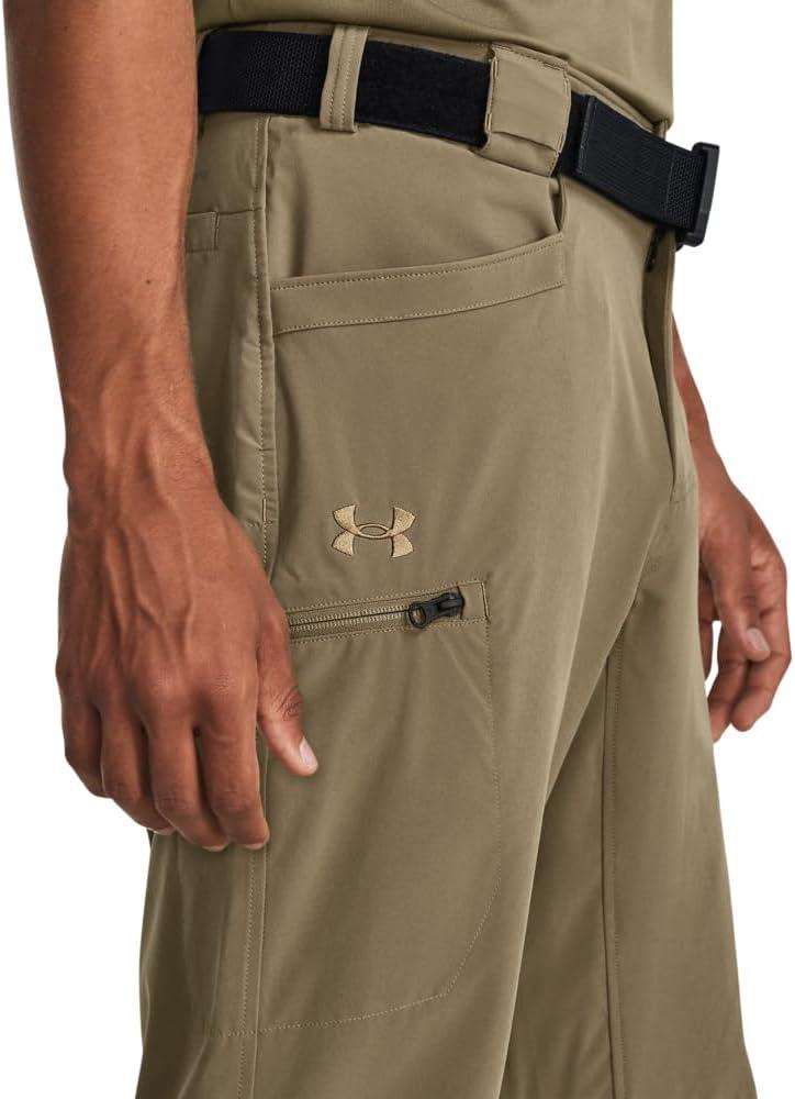UA Storm technology repels water without sacrificing breathability. Lightweight stretch-woven fabric delivers superior comfort & durability. Quick-drying, 4-way stretch material moves better in every direction. Stretch-engineered waistband with belt loops & working fly for superior mobility & comfort. Seam design at the knees gives you full range of motion. Open hand & back pockets, secure zip cargo pocket & reinforced knife pocket. Badge clip on front belt loops. Pockets: Yes. Straight leg fit. 87% Polyester/13% Elastane.