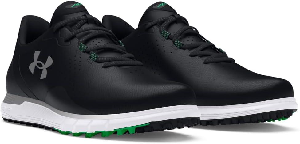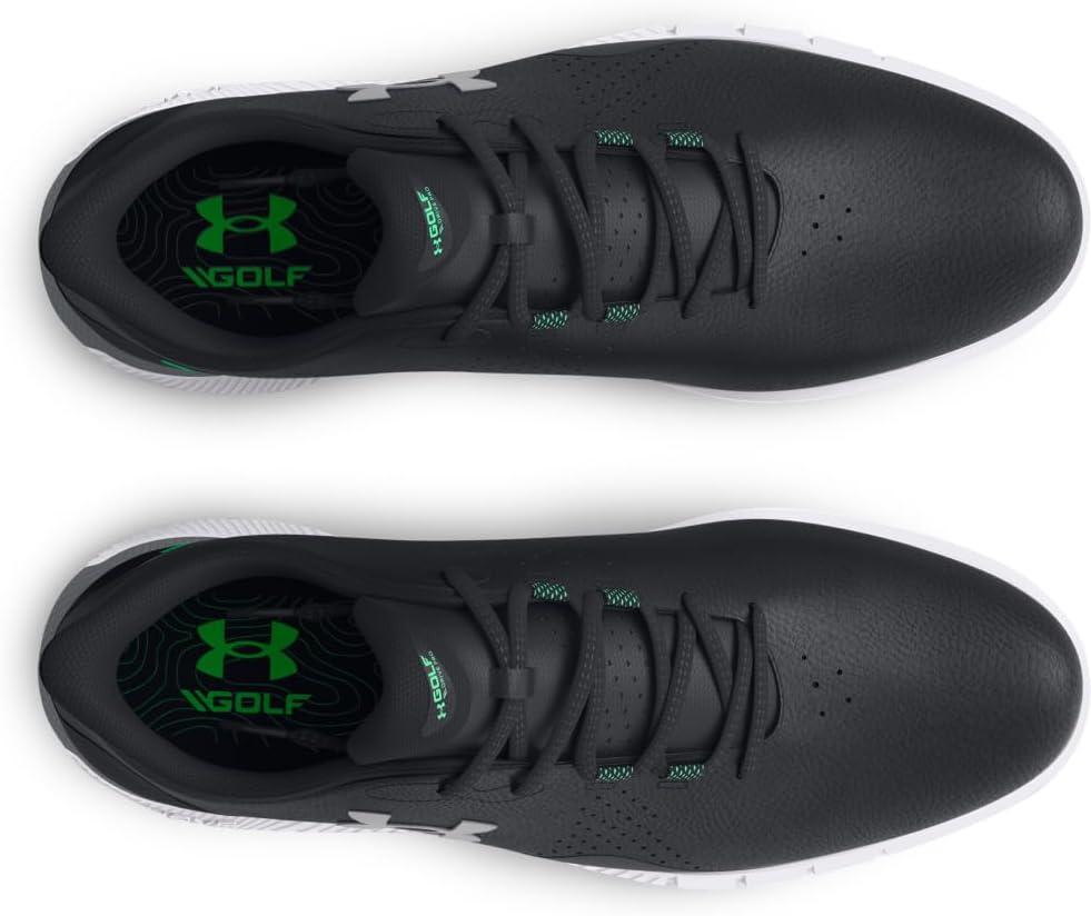 The key here is the UA HOVR™ cushioning—it's not just comfortable, it actually returns energy. Add in waterproof, breathable technology and you're ready to go all season. Breathable, supportive engineered microfiber upper & full waterproof membrane with 1-year warranty. Molded sockliner for enhanced fit & comfort. UA HOVR™ cushioning in the heel helps eliminate impact. UA Rotational Resistance outsole for lightweight lockdown traction to support your swing. Spikeless outsole for a lighter, more flexible feel without any compromise in traction. Weight: 10.3 oz. Lace type: Standard tie.