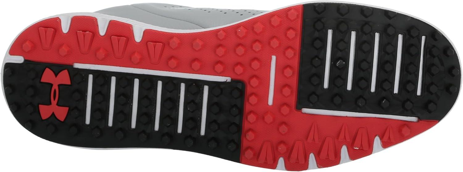 The key here is the UA HOVR™ cushioning—it's not just comfortable, it actually returns energy. Add in waterproof, breathable technology and you're ready to go all season. Breathable, supportive engineered microfiber upper & full waterproof membrane with 1-year warranty. Molded sockliner for enhanced fit & comfort. UA HOVR™ cushioning in the heel helps eliminate impact. UA Rotational Resistance outsole for lightweight lockdown traction to support your swing. Spikeless outsole for a lighter, more flexible feel without any compromise in traction. Weight: 10.3 oz. Lace type: Standard tie.