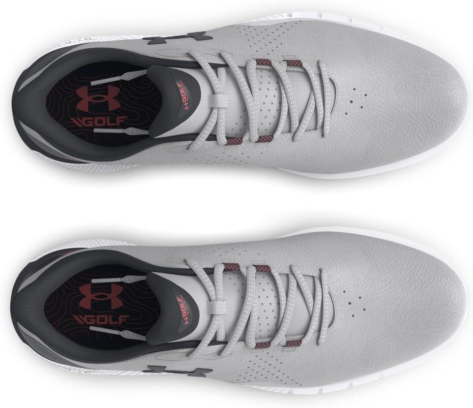 The key here is the UA HOVR™ cushioning—it's not just comfortable, it actually returns energy. Add in waterproof, breathable technology and you're ready to go all season. Breathable, supportive engineered microfiber upper & full waterproof membrane with 1-year warranty. Molded sockliner for enhanced fit & comfort. UA HOVR™ cushioning in the heel helps eliminate impact. UA Rotational Resistance outsole for lightweight lockdown traction to support your swing. Spikeless outsole for a lighter, more flexible feel without any compromise in traction. Weight: 10.3 oz. Lace type: Standard tie.