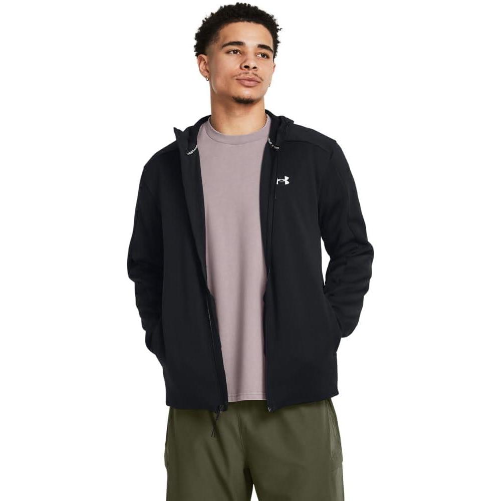 UA Storm technology repels water without sacrificing breathability. Wind-resistant bonded construction for lightweight protection. Swacket fabric is ultra-soft so it feels like a sweatshirt, only more protective to battle the cold. Woven overlays add protection & hold in warmth. Generous 3-panel hood construction with drawcord adjust. Secure, zip hand pockets. Internal locker loop for easy hang up. Binding at cuffs & back bottom hem. Garment should be washed & dried zipped up. 100% Polyester.