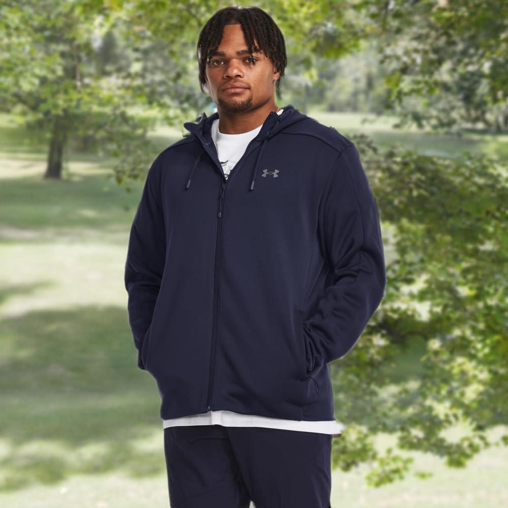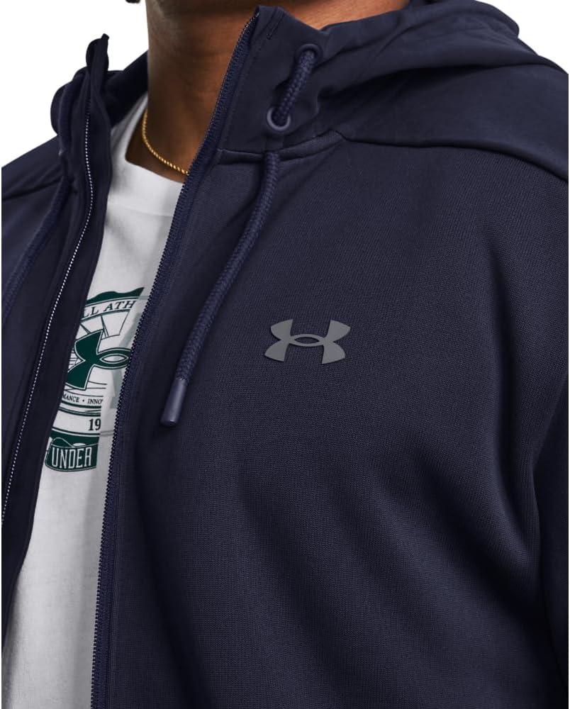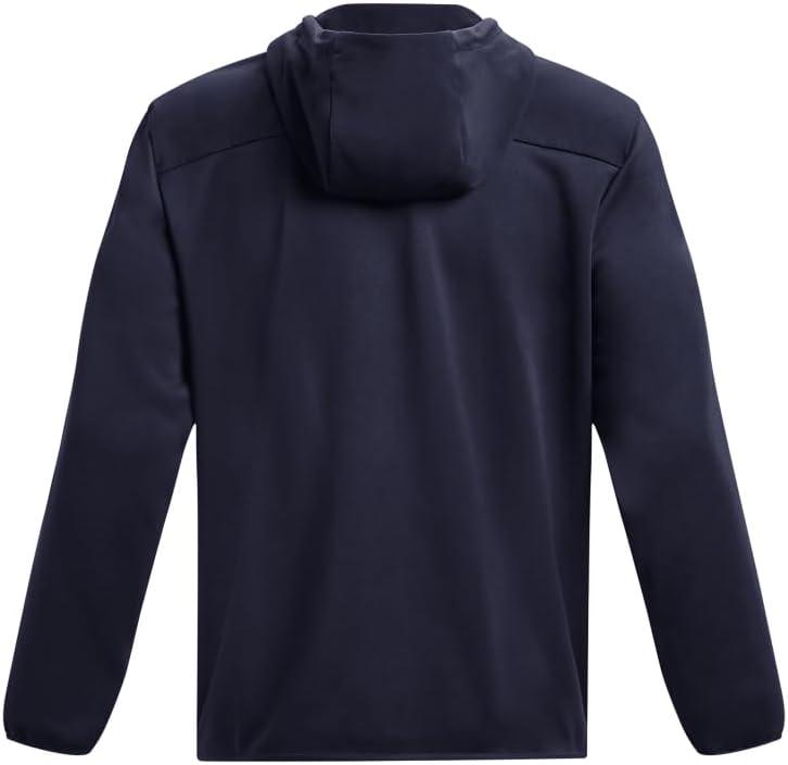 UA Storm technology repels water without sacrificing breathability. Wind-resistant bonded construction for lightweight protection. Swacket fabric is ultra-soft so it feels like a sweatshirt, only more protective to battle the cold. Woven overlays add protection & hold in warmth. Generous 3-panel hood construction with drawcord adjust. Secure, zip hand pockets. Internal locker loop for easy hang up. Binding at cuffs & back bottom hem. Garment should be washed & dried zipped up. 100% Polyester.