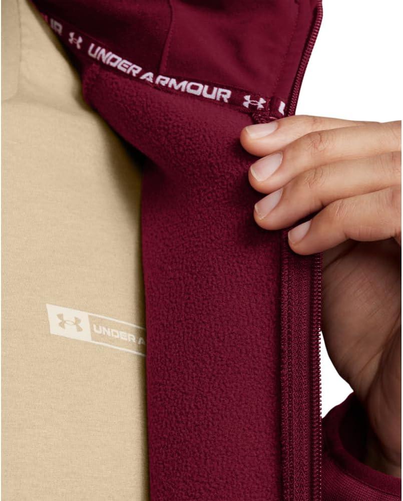 UA Storm technology repels water without sacrificing breathability. Wind-resistant bonded construction for lightweight protection. Swacket fabric is ultra-soft so it feels like a sweatshirt, only more protective to battle the cold. Woven overlays add protection & hold in warmth. Generous 3-panel hood construction with drawcord adjust. Secure, zip hand pockets. Internal locker loop for easy hang up. Binding at cuffs & back bottom hem. Garment should be washed & dried zipped up. 100% Polyester.