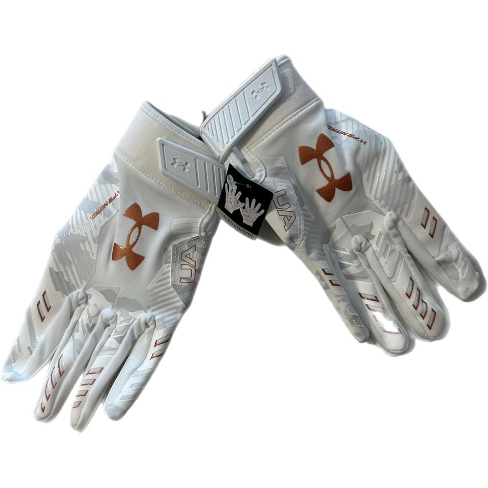 Under Armour Mens F9 Nitro Novelty Football Gloves((103) White / White / Metallic Copper)