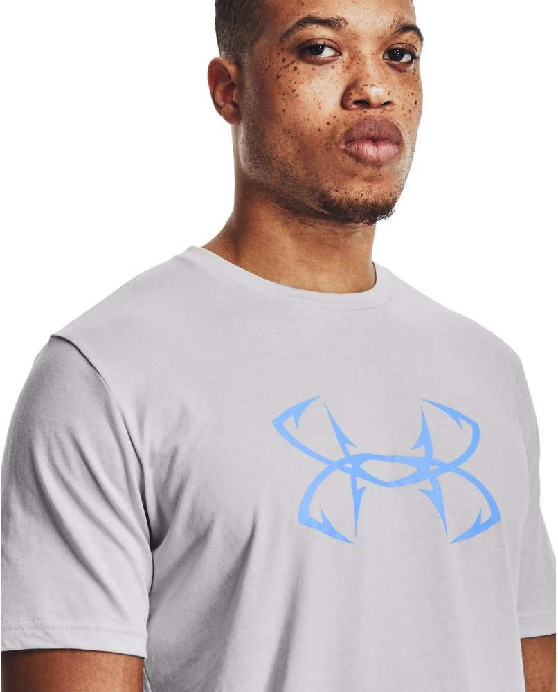 Under Armour Men’s Fish Hook Logo Tee(Halo Gray (015)/Carolina Blue)