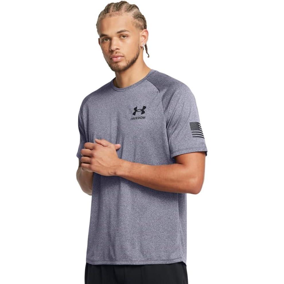 Under Armour Men’s Freedom Tech Short Sleeve T-Shirt((413) Midnight Navy Light Heather / / Black)