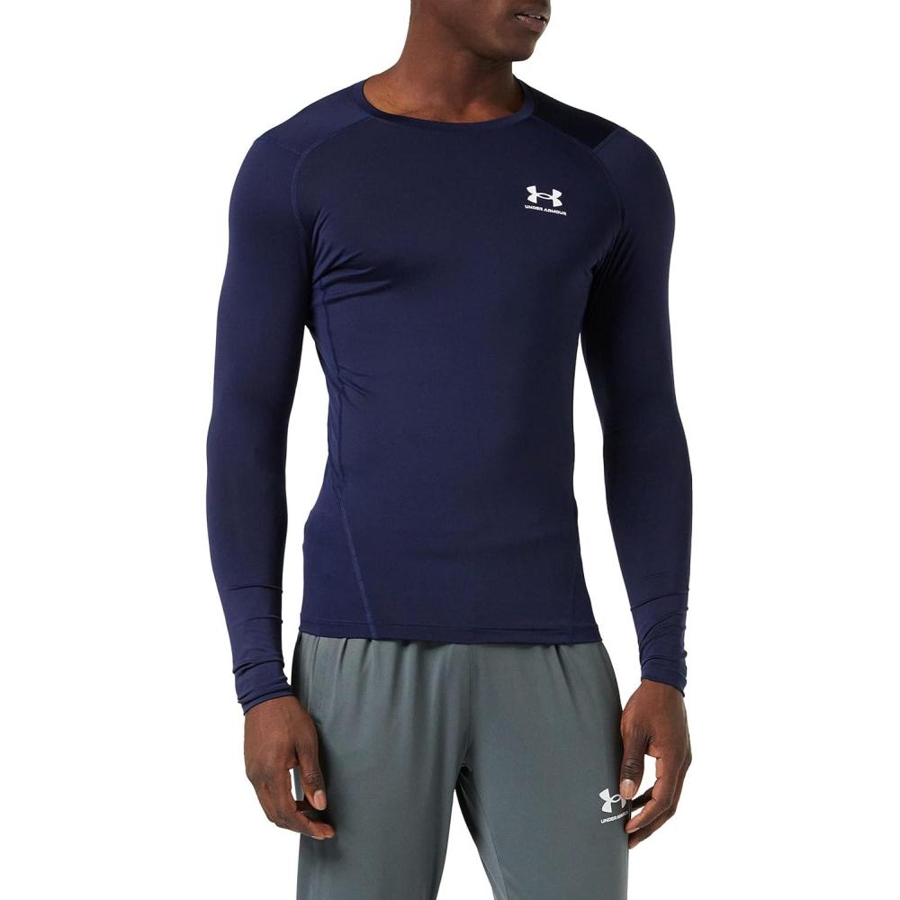 Under Armour Men’s HeatGear Compression Long-Sleeve T-Shirt(Midnight Navy/White)
