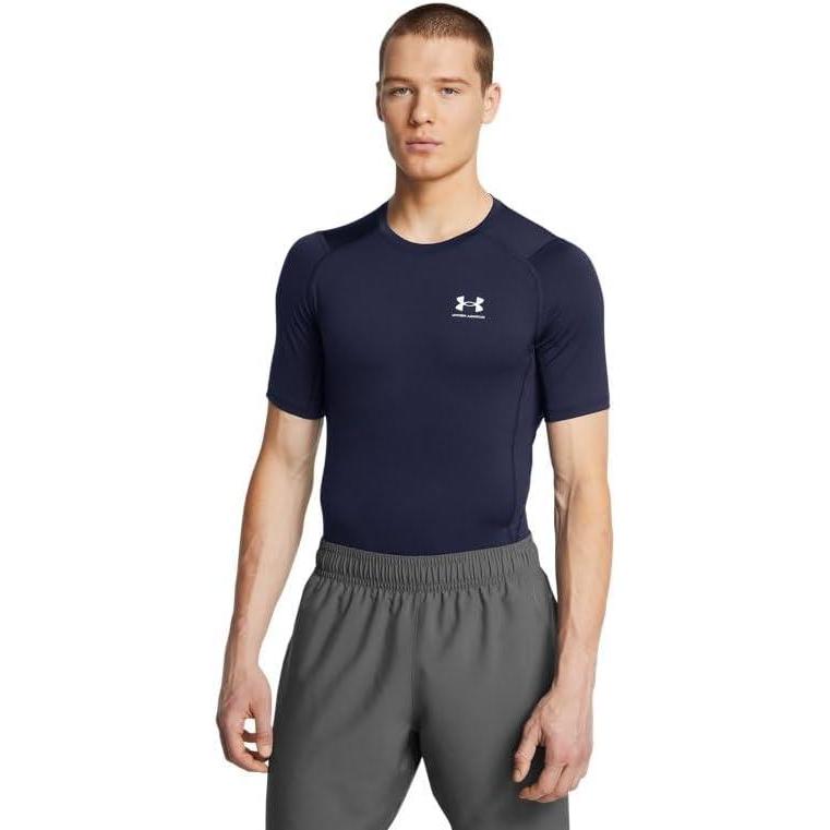 Under Armour Men’s HeatGear Compression Short-Sleeve T-Shirt(Midnight Navy / White – 411)