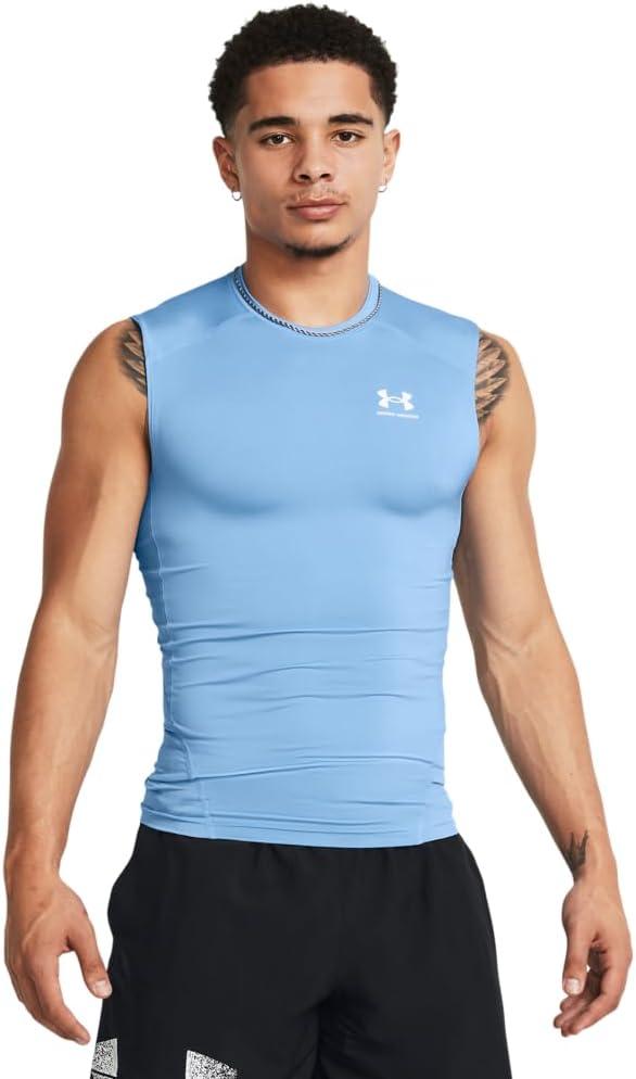 Under Armour Men’s HeatGear Compression Sleeveless T-Shirt((475) Carolina Blue / / White)