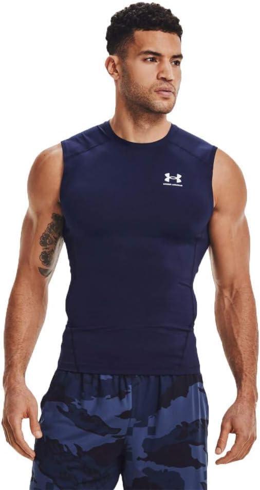Under Armour Men’s HeatGear Compression Sleeveless T-Shirt(Black (001)/White)
