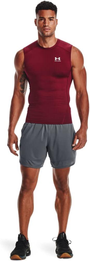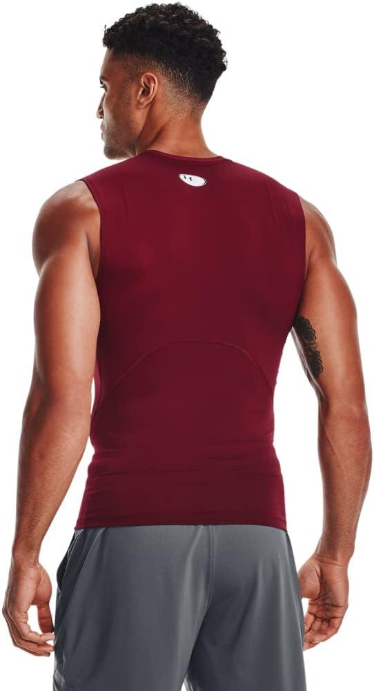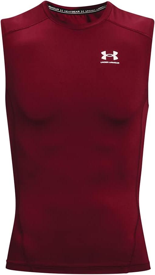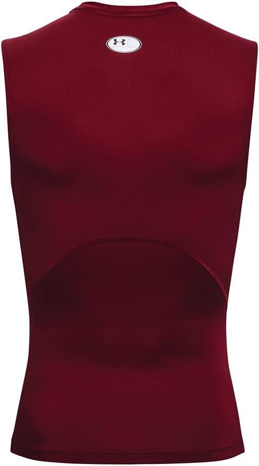 Under Armour Men’s HeatGear Compression Sleeveless T-Shirt(Cardinal (625)/White)