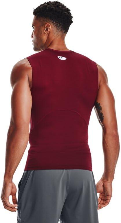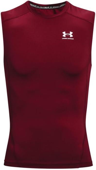 Under Armour Men’s HeatGear Compression Sleeveless T-Shirt(Cardinal (625)/White)